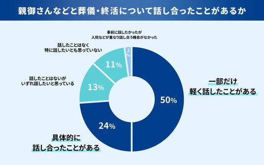 親御さん(または近しいご家族)と、葬儀・終活について話し合ったことがあるかを尋ねると、以下の結果となりました。