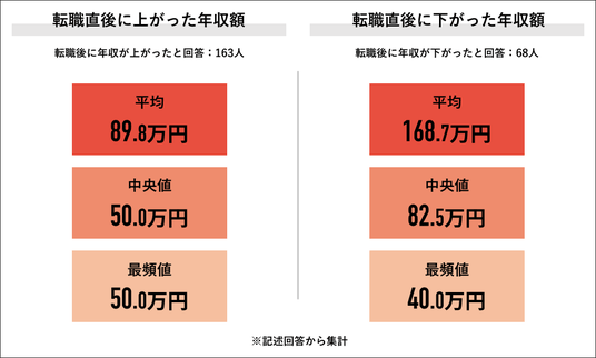 【転職直後に上がった/下がった年収額】