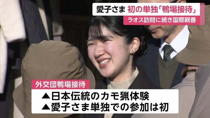 日本伝統のカモ猟を体験する「外交団鴨場接待」に愛子さまが参加されたのは今年2月に秋篠宮家の次女・佳子さまとともに参加した以来で単独では初めて。