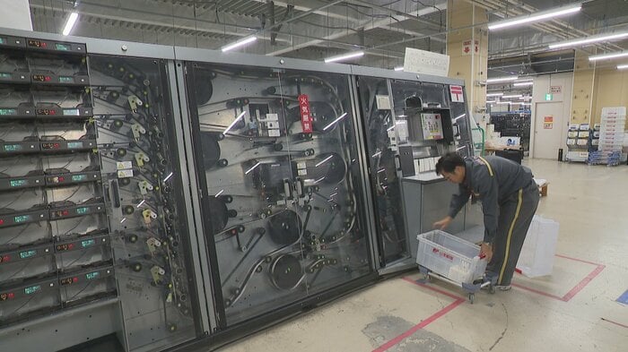 また、年賀状を郵便番号などを読み取り、送り先ごとに自動で仕分ける区分機を見学し、年賀状が次々と仕分けられていく様子を興味深そうに見入っていました。