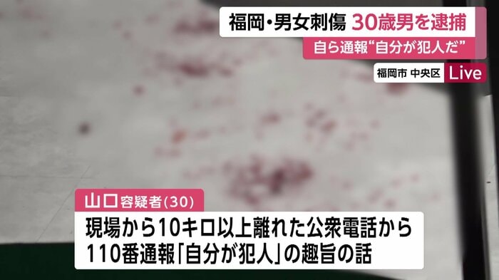 山口容疑者は15日午前2時ごろ、現場から10キロ以上離れた福岡県内の公衆電話から自ら110番通報し、「自分が犯人だ」という趣旨の話をしたという。