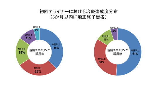 インビザラインのプログレッシブアセスメント機能による3Dシミュレーション達成度を評価した結果、遠隔モニタリングの活用により、
