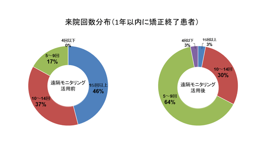 これらの結果から、遠隔モニタリングの活用により、来院回数を抑えられる傾向が示されました。