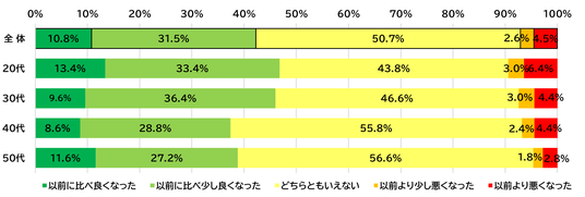 遺伝子組み換え食品についてどのようなイメージを持っているかとの問いに「特に何のイメージも持っていない」と答えた人が最も多く、全体の45%でした。若年層ほど否定的な回答が少なく、20代では「良い」「どちらかといえば良い」(好意的)と「特にイメージなし」(中立的)の合計が約7割を占めています。■遺伝子組み換え食品についてどのようなイメージを持っていますか。全く知らない方は、どのようなイメージを持ちますか。