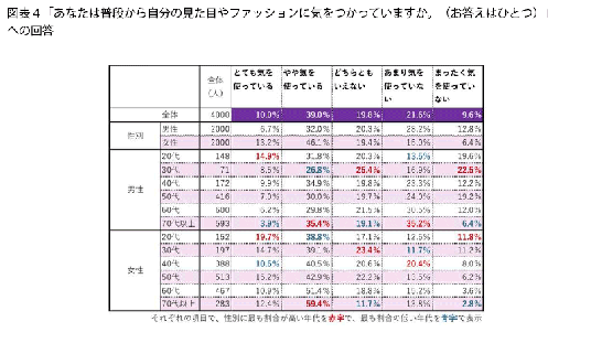 また、見た目やファッションの気遣い度別に回答を見てみると(図表8)、ほとんどの項目で、気を遣っている人ほど、割合が高くなっていることがわかります。