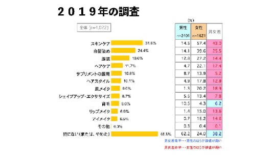 さらに、「特にない(または、やめた)」と回答した人は前回の46.8%から39.0%に減少していることから、全体的に意識が向上しているのかもしれません。