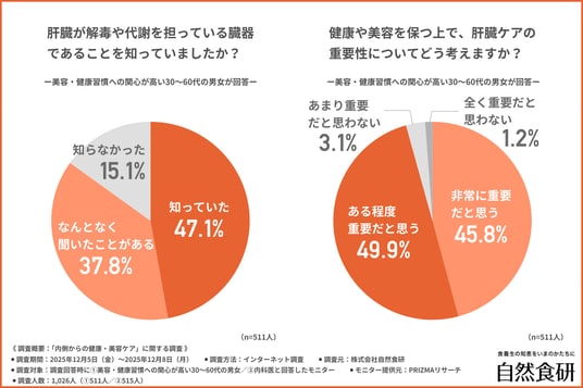 「知っていた」は約半数。解毒・代謝の要“肝臓”の役割、まだまだ知られていない?