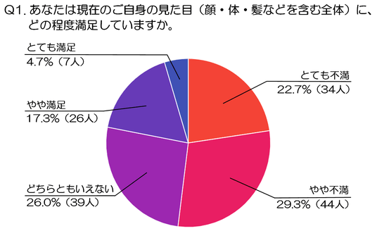 Q1. あなたは現在のご自身の見た目(顔・体・髪などを含む全体)に、どの程度満足していますか。