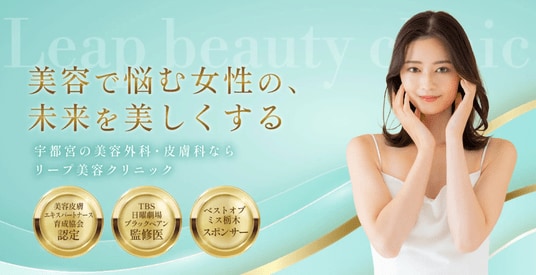 Leap beauty clinic(リープ美容クリニック)は、「美容で悩む女性の、未来を美しくする」**をコンセプトにした美容外科・美容皮膚科クリニックです。JR宇都宮駅西口徒歩1分の通いやすい立地で、二重整形や目元・鼻の手術、クマ治療、肌治療、医療脱毛など、幅広い美容医療をご提供しています。
