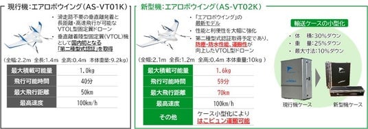 - エアロセンス社において新型VTOL型ドローンを開発し、耐水性を上げたほか、コンパクトな運搬ケースに収納可能となったため列車荷物輸送サービス「はこビュン」の検証を行う予定です。