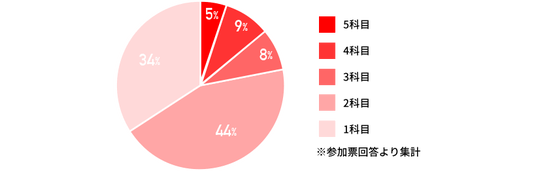 科目合格以上内訳:5科目6名、4科目12名、3科目10名、2科目55名、1科目42名