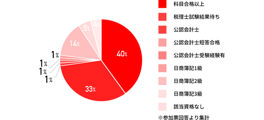 日商簿記1級3名、日商簿記2級45名、日商簿記3級17名、該当資格なし11名