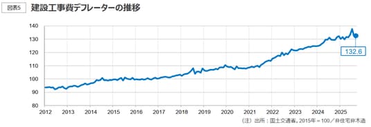 資材価格と労務費の高騰によって建設工事費は上昇傾向にある。加えて人手不足の深刻化で工事期間の長期化も進んでいる。そのため、オフィス移転時の内装及び原状回復工事に要するコストと期間は従前よりも大幅に増加している。この傾向が緩和する要素は見当たらず、今後も継続することが見込まれる。