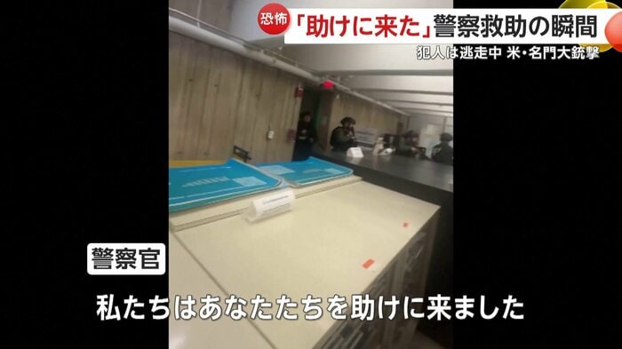 これは、キャンパス内で身を潜めていた学生たちを、地元警察が救助に訪れた際の映像。