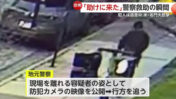 地元警察は、現場を離れる容疑者の姿として防犯カメラの映像を公開し、行方を追っていた。
