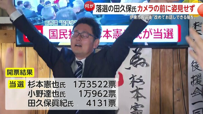 選挙結果の判明後、田久保氏は報道陣の取材に応じる約束だったが、日付が変わっても、カメラの前に姿を見せることはなかった。