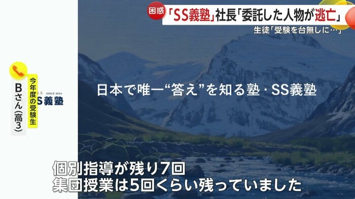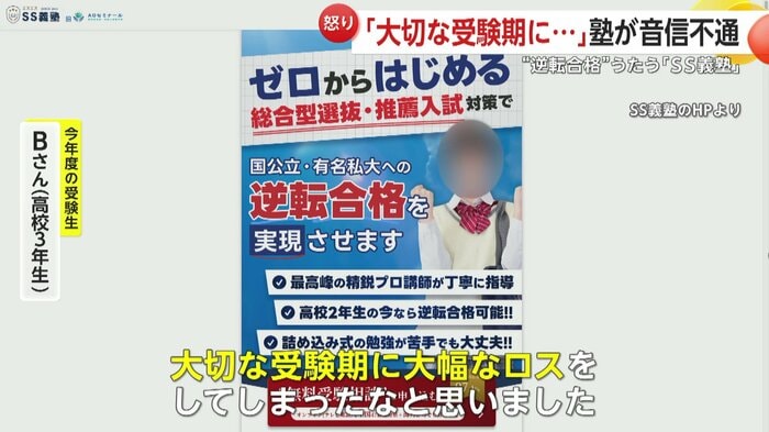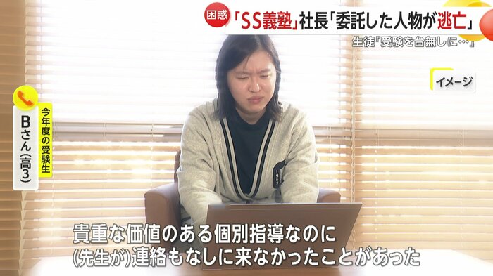 こう語るのは、入試の直前期間の授業が受けられず、その料金も返金されていないと訴える高校3年生のBさん。