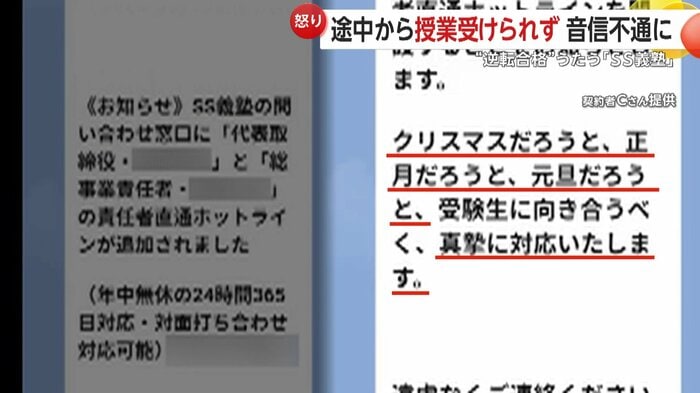 日曜日も接続していたんですけど、なんか連絡が来ないというのを子どもが言い始め、連絡を取っていた(担当者)ともまったく連絡が取れず。Xとかいろいろ調べていたら、やっぱり(塾や担当者に)つながらないって方がいらっしゃったので。