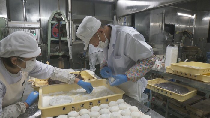 せんぼ製菓舗では12月25日以降、正月用の餅の製造が本格化し、多い日には1日あたりもち米1.4トンを使用する。これまでは材料費や人件費の高騰を企業努力で吸収してきたが、今年は値上げせざるを得ない状況となった。