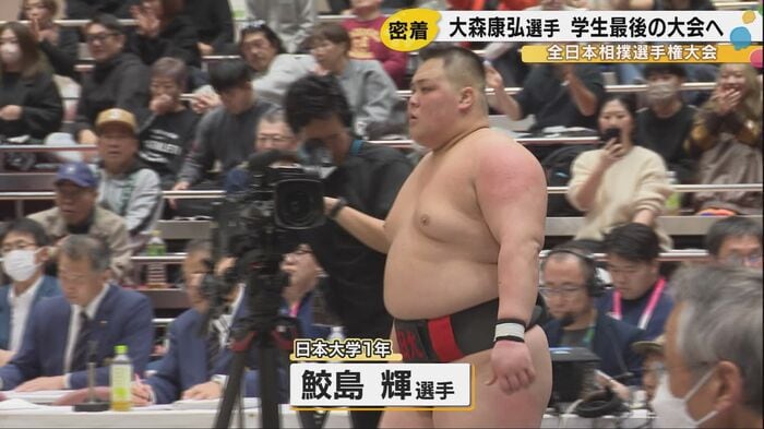 決勝の相手は日本大学の鮫島輝選手。身長185センチ、体重160キロという大相撲顔負けの体格を武器に、1年生ながら決勝進出を決めていた。