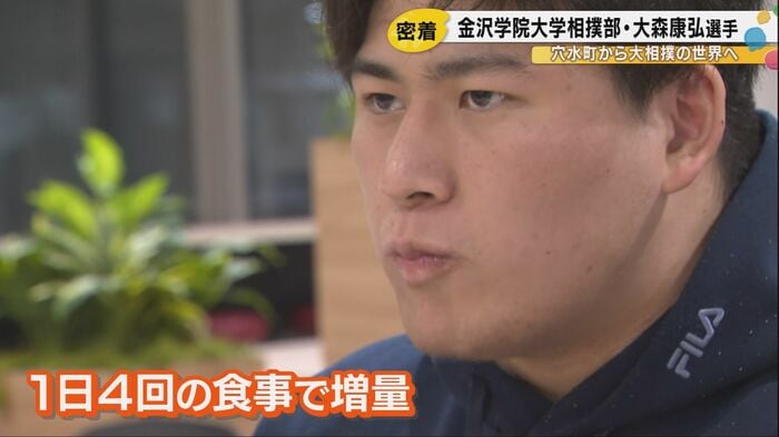 大森選手の現在の体重は120キロ。相撲界ではまだまだ軽量級に分類される体格だ。そのため、一日4回の食事で体重を増やそうとしているが…