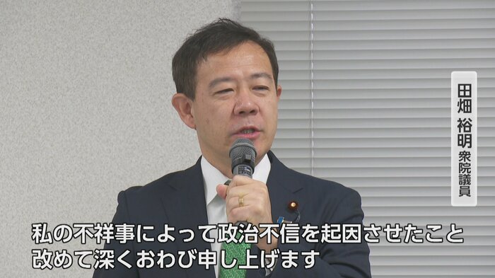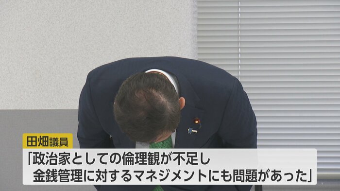 田畑議員は一連の問題について、政治家としての倫理観が不足し、金銭管理に対するマネジメントにも問題があったと陳謝。「許されるならば、どうか皆様とともに働くことができるチャンスをお与えいただきたい」と訴えた。