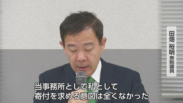 また、2024年6月に開催を予定していたいわゆる「ご入金のみ」のパーティー問題についても説明があった。政治資金パーティーの案内に「ご入金のみ」の項目を設けたことが、政治資金規正法で禁じられている寄付にあたると指摘されていた点について、田畑議員は「当事務所として私として寄付を求める意図は全くなかった。入金があり欠席された方には対価として国政報告資料を後日届けていた」と釈明した。