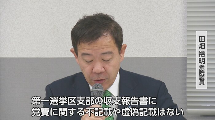 しかし、自身の関与を否定する新たな証拠はなく、これまでと同じ説明を繰り返すにとどまった。田畑議員は「私を支援する企業からの第一選挙区支部への寄付金を党費の支払いに充てていた点については、弁護士による客観的な調査の結果、そのような事実はなかった。第一選挙区支部の収支報告書に党費に関する不記載や虚偽記載はない」と主張した。