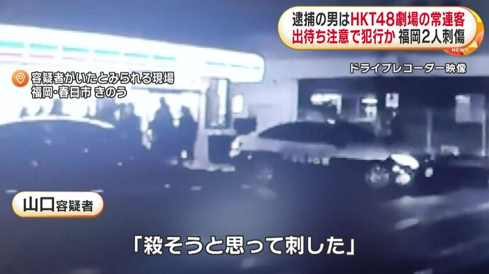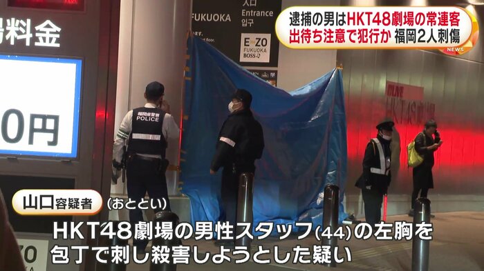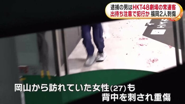 福岡市で男女2人が刃物で刺され30歳の男が逮捕された事件で、男は現場に隣接するHKT48劇場の常連客であることが分かった。