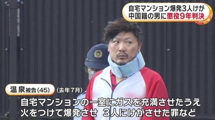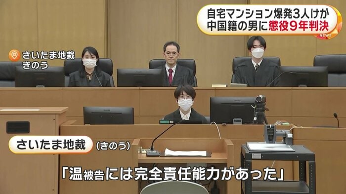 埼玉・川口市の自宅マンションの一室を爆発させて、けがをさせた罪に問われた中国籍の男に、懲役9年の実刑判決だ。