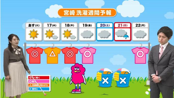 テレビ宮崎の夕方ニュース「#Link」でお天気コーナーを担当している気象予報士・古山圭子さんが天気の豆知識を解説するコーナー。今回は、「洗濯物の乾きやすさ」をテーマにお伝えします。
