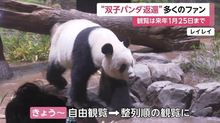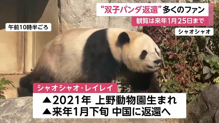 パンダファンたちは「会える時に会って、明るい気持ちで旅立ちを応援して、これまで本当に育ってくれてありがとう」「本当に一瞬だけこっちを向いてくれた。これがきょうのベストショットです」などと話した。