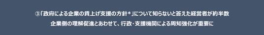 3.「政府による企業の賃上げ支援の方針*」について知らないと答えた経営者が約半数
