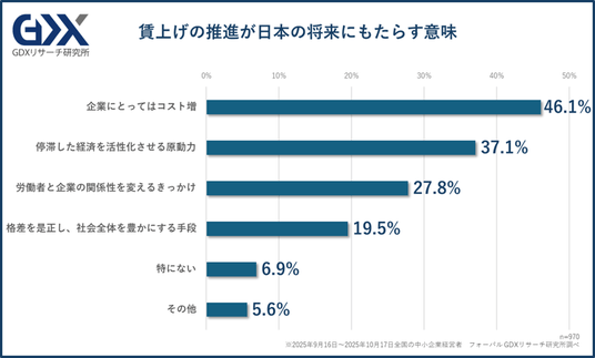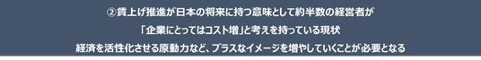 2.賃上げ推進が日本の将来に持つ意味として約半数の経営者が「企業にとってはコスト増」と考えを持っている現状