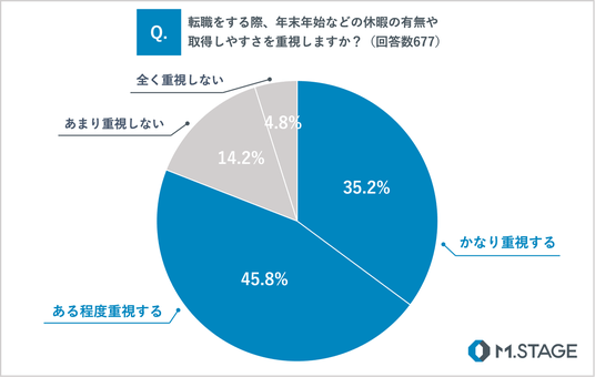 転職をする際に、年末年始の休暇の有無や取得しやすさを「かなり重視する」医師は35.2%、「ある程度重視する」医師は45.8%となり、約8割の医師が年末年始休暇を転職先の判断材料の一つにしている結果となりました。