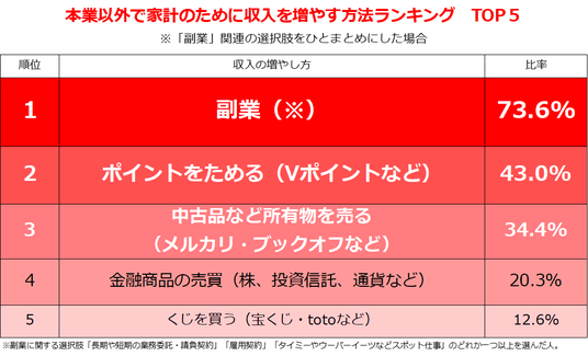6.収入増やす方法(副業関連ひとまとめ):「副業」73.6%
