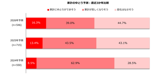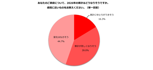 2.2026年の家計「ゆとりできそう」16.3%、「苦しくなりそう」39.0%
