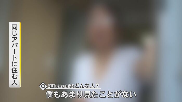 アパートで1人暮らしをしているという山口容疑者。容疑者と同じアパートに住む人に話を聞くと「僕もあまり見たことがない」ということだった。