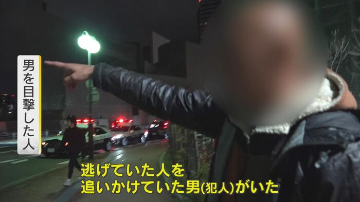 男を目撃した人は「逃げている人が『刺された』と言って『こいつナイフを持っている』と。逃げていた人を追いかけていた男(犯人)がいた。(男の印象は)落ち着いた感じでスタスタと。淡々と歩いていた感じ」とその時の状況を話す。