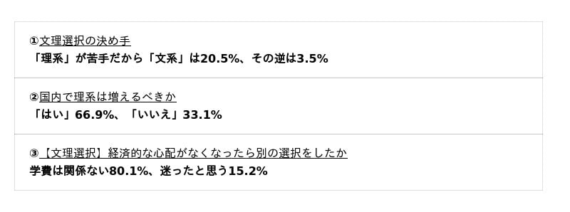■ トピックス1.【文理選択の決め手】「理系」が苦手だから「文系」は20.5%、その逆は3.5%
