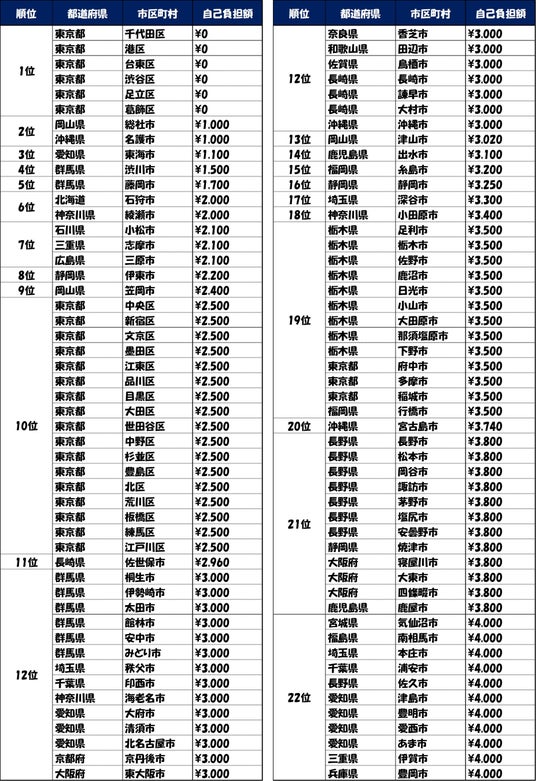 ● 人口5万人以上の549自治体を対象に自己負担額ランキングを発表