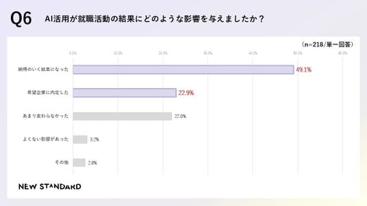 就職活動でAIを活用した学生の49.1%が「納得のいく結果になった」と回答し、さらに22.9%は希望企業への内定獲得に直結している実態も明らかになりました。
