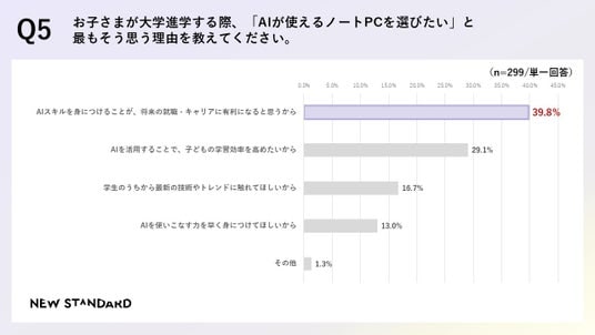 保護者の最多理由である「AIスキルが将来の就職・キャリアに有利になる」(39.8%) は、