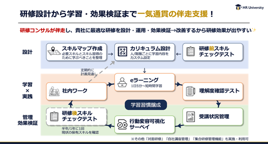 HR Universityは、研修の企画から実施、受講後の行動変化の確認までを通して支援する「伴走型」の研修プラットフォームです。今回の調査では、「行動変容の可視化」や「受講ログの分析」を求める声が特に多く寄せられました。HR Universityは、これらのニーズに対応する仕組みを備えています。