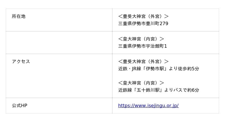 中心となるのは、太陽神・天照大御神(あまてらすおおみかみ)を祀る「内宮」と、産業の守り神・豊受大御神(とようけのおおみかみ)を祀る「外宮」の2つです。