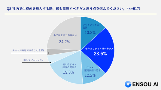 生成AI導入時に最も重視されるのは「セキュリティ・ガバナンス」(23.6%)