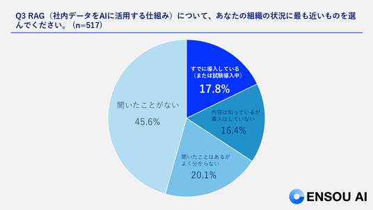 RAG導入済み企業はわずか17.8%。一方で導入やトライアルを希望する企業は35%存在