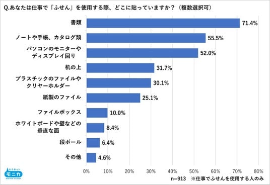 ・ふせんの貼付場所は「書類」「ノート・手帳」「PC回り」。