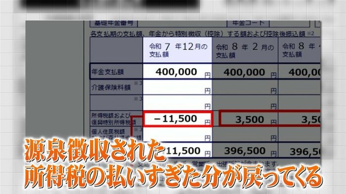 今年、年金から源泉徴収された所得税の“払いすぎた分”が戻ってきたのです。
