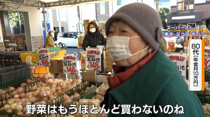 白菜は一切れ税込み85円、キャベツは一玉130円で販売されるなど、食料品高騰の強い味方となっている都内の激安スーパー。しかし、そこで取材班が出会った80代の女性は…。